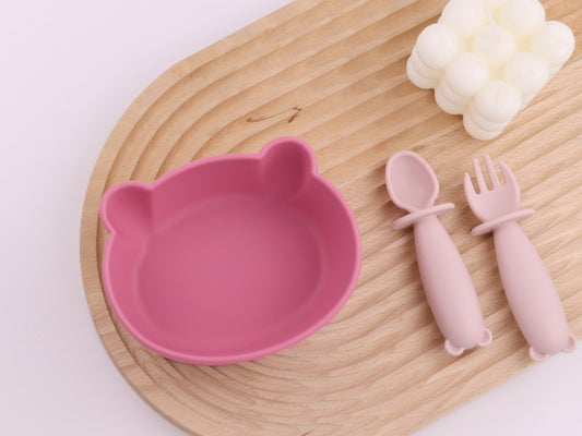 Bear Shaped Silicone Baby Bowl Feeding Set (Hibiscus)