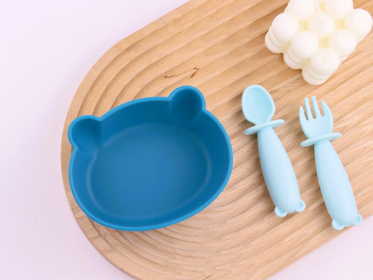 Bear Shaped Silicone Baby Bowl Feeding Set (Summer Sky)